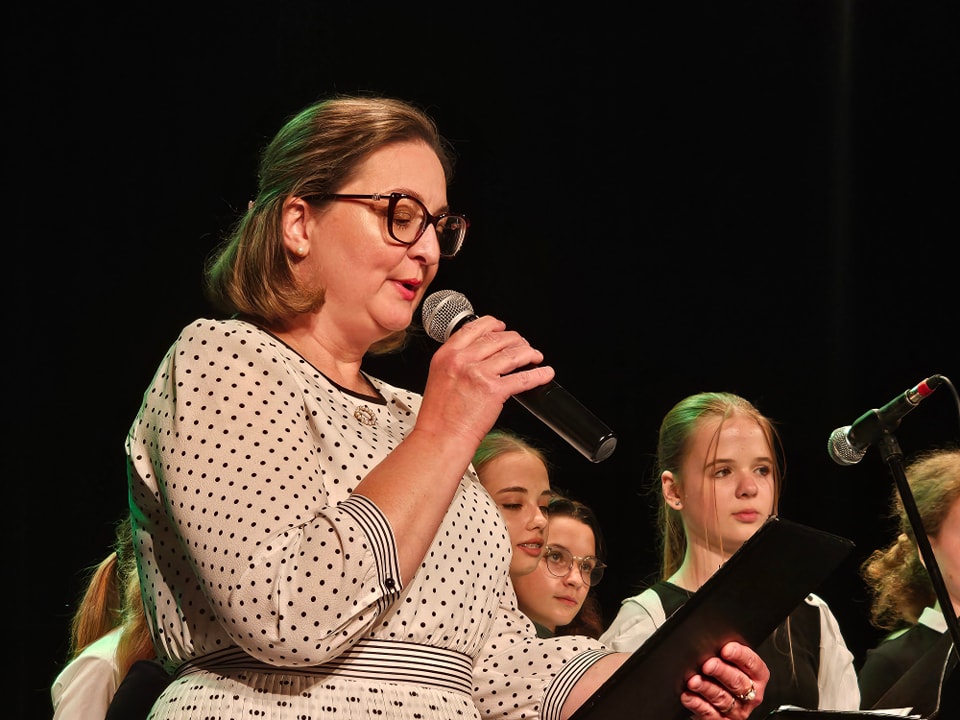 Wszystkich zgromadzonych powitała dyrektor szkoły pani Joanna Ustarbowska-Dudka. Koncert poprowadziła pani Magdalena Makowska.