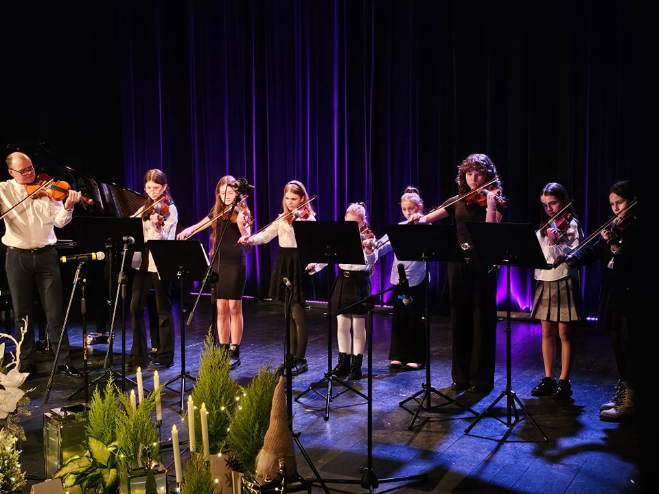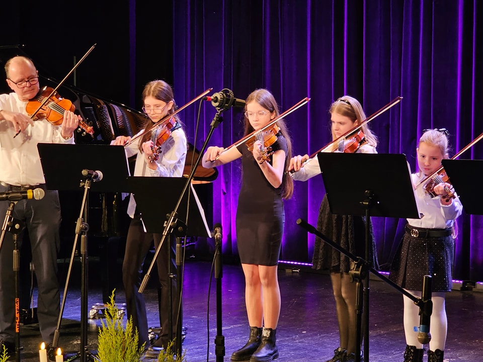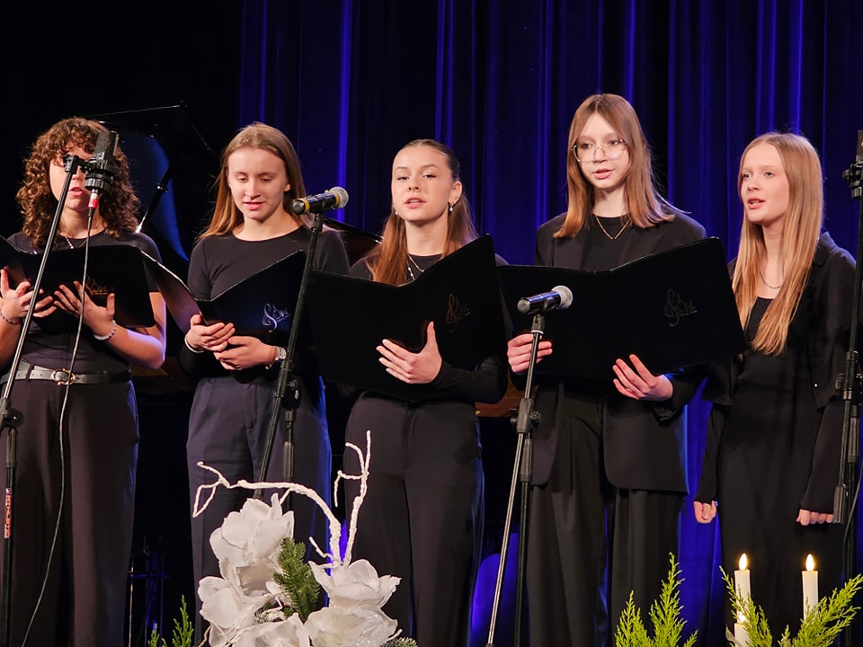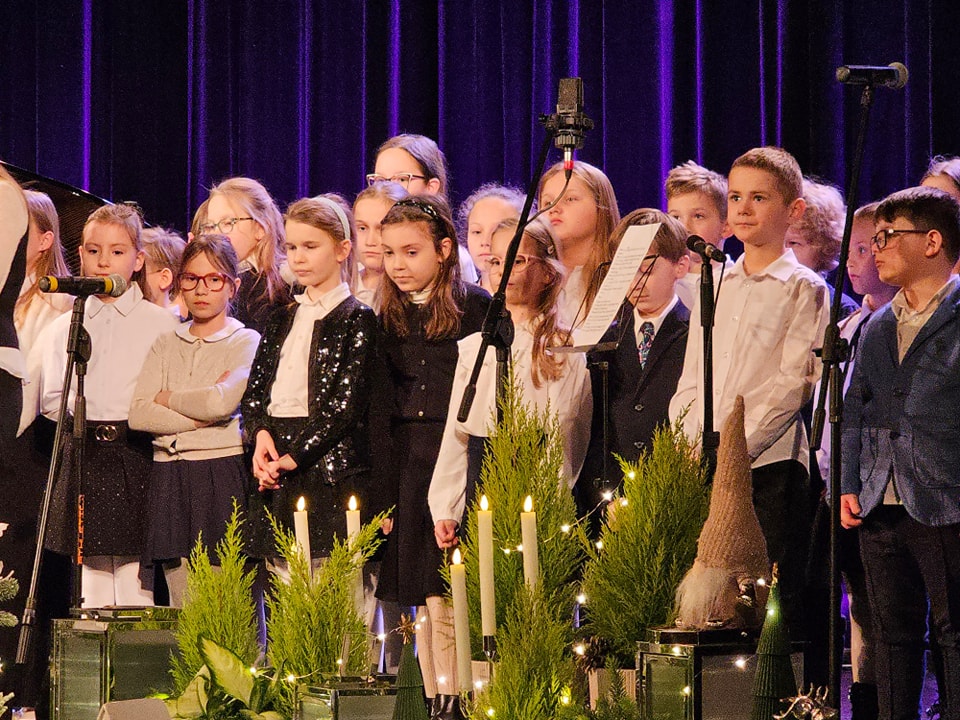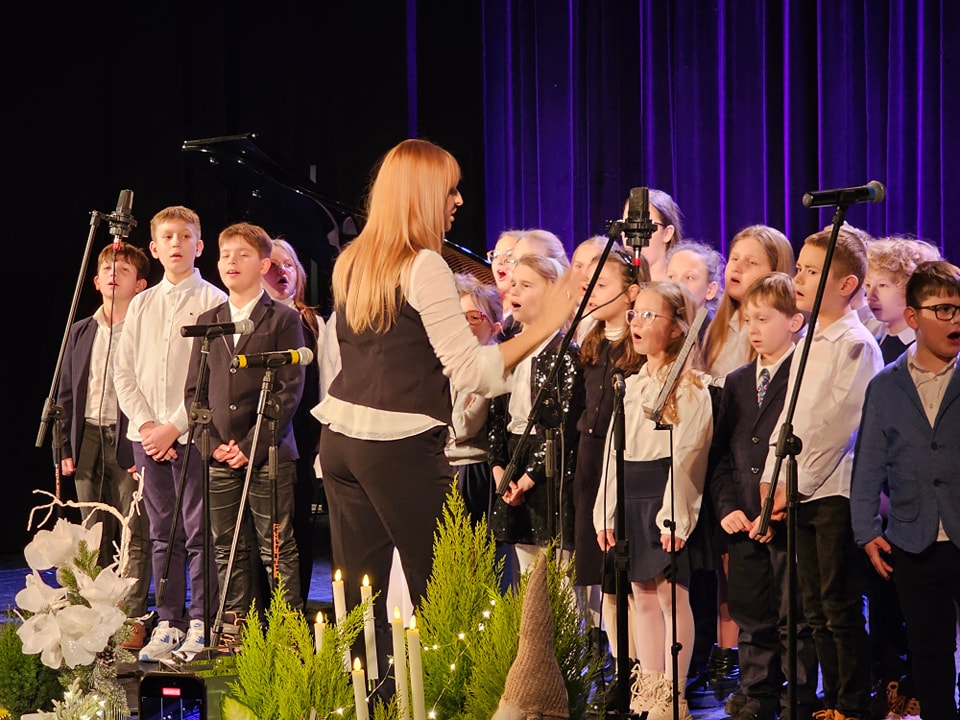- Koncert otworzyła dyrektor szkoły pani Joanna Ustarbowska-Dudka, która powitała gości i podkreśliła, jak ważne są takie wydarzenia w życiu młodych muzyków, którzy poprzez muzykę uczą się wytrwałości, dyscypliny, ale także wyrażania siebie w artystyczny sposób. Po kilku słowach powitania scena ożyła, a pierwsze dźwięki kolęd i pastorałek, które rozbrzmiały w kinie „Sokół”, wprowadziły zebranych w świąteczny nastrój.