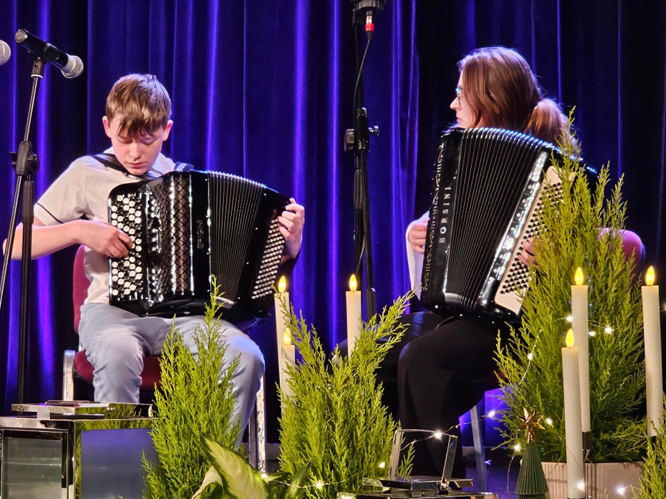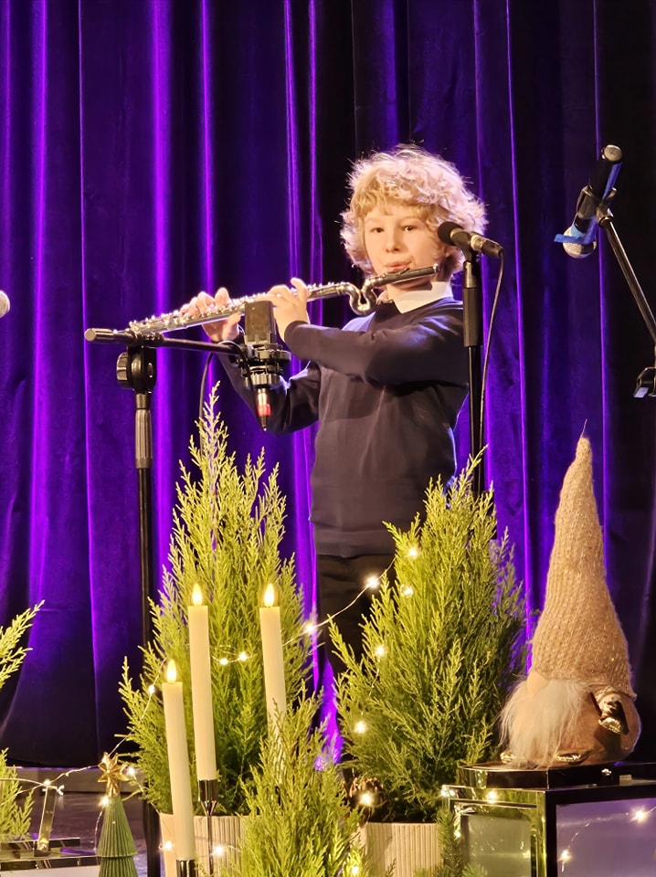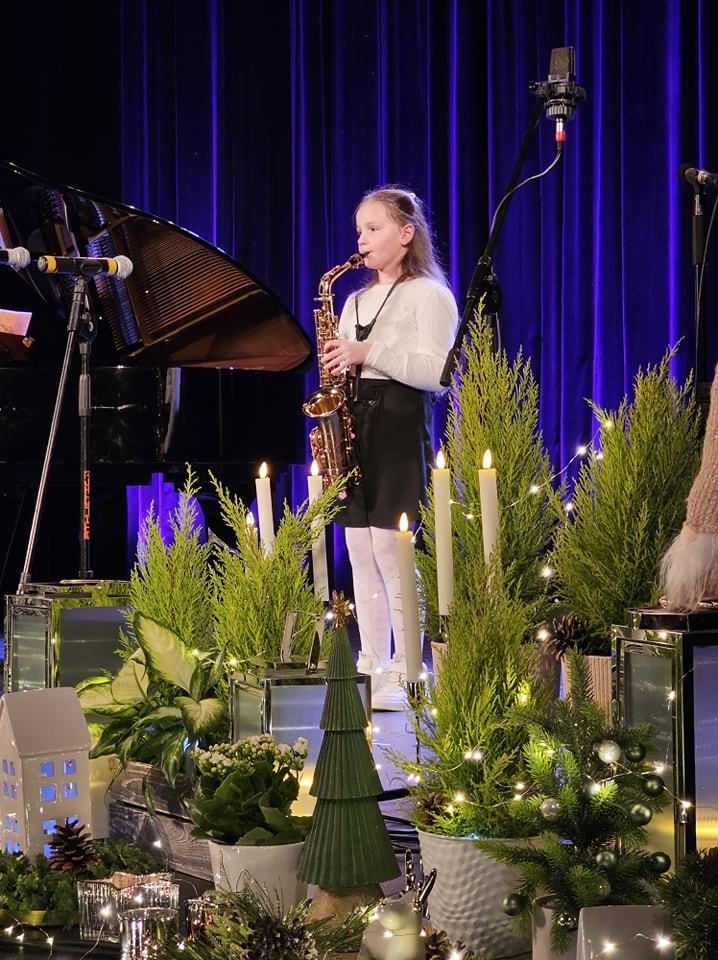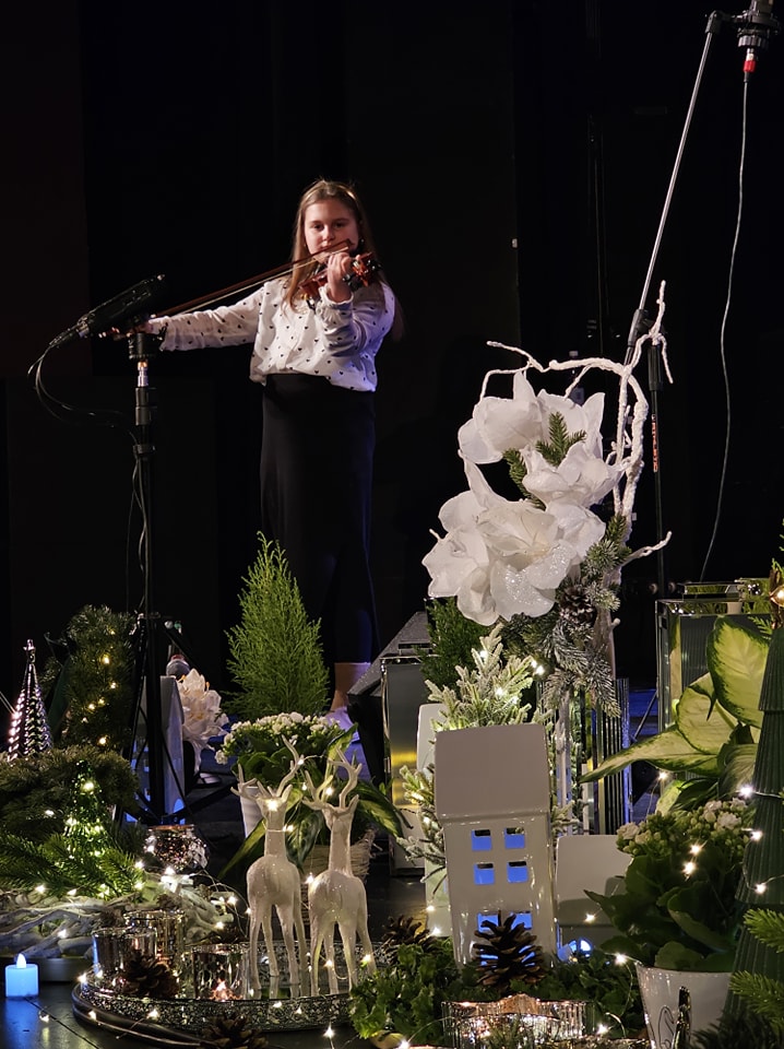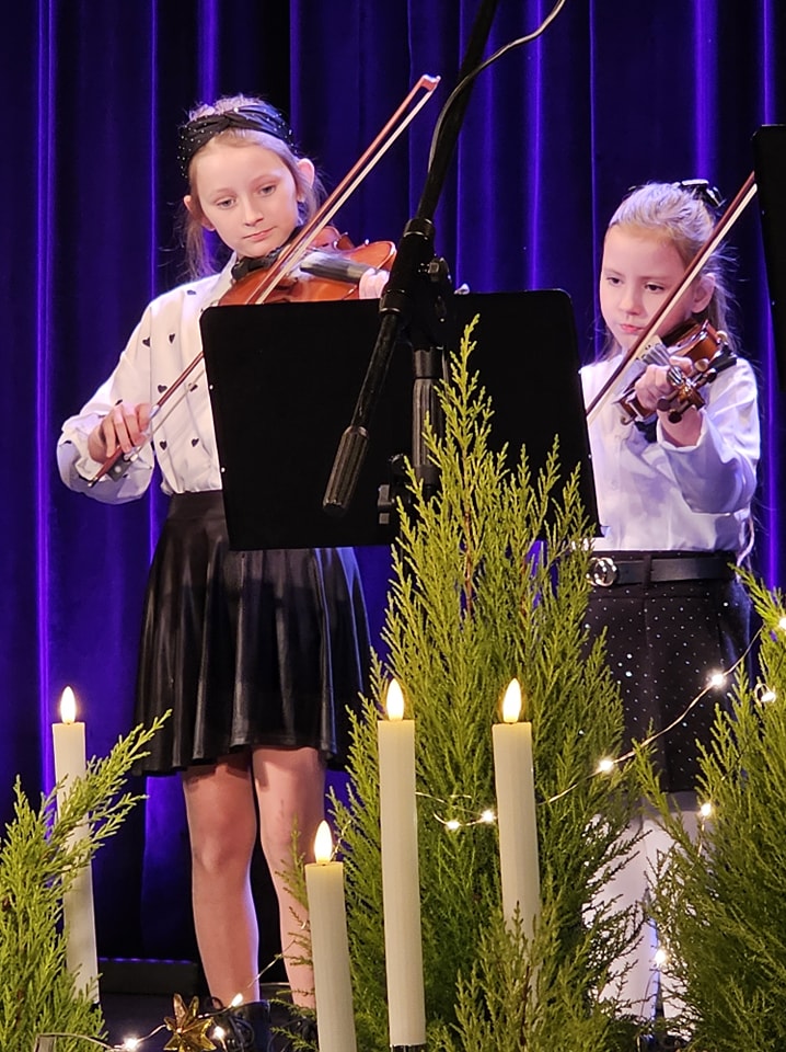 - Koncert otworzyła dyrektor szkoły pani Joanna Ustarbowska-Dudka, która powitała gości i podkreśliła, jak ważne są takie wydarzenia w życiu młodych muzyków, którzy poprzez muzykę uczą się wytrwałości, dyscypliny, ale także wyrażania siebie w artystyczny sposób. Po kilku słowach powitania scena ożyła, a pierwsze dźwięki kolęd i pastorałek, które rozbrzmiały w kinie „Sokół”, wprowadziły zebranych w świąteczny nastrój.