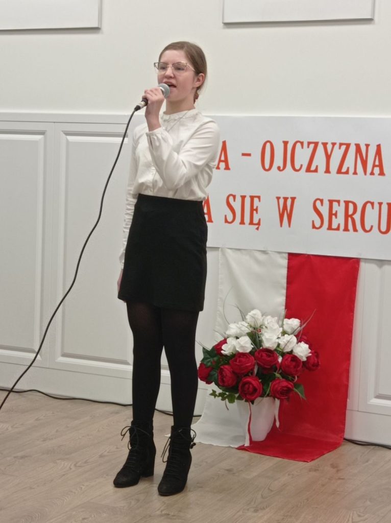 - Przedmiotem konkursu jest prezentacja wokalna – wykonanie jednego utworu muzycznego o charakterze patriotycznym a cappella lub z akompaniamentem – solo lub w duetach.