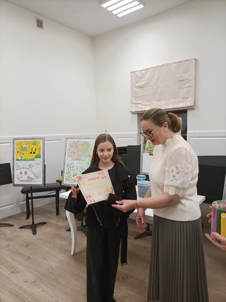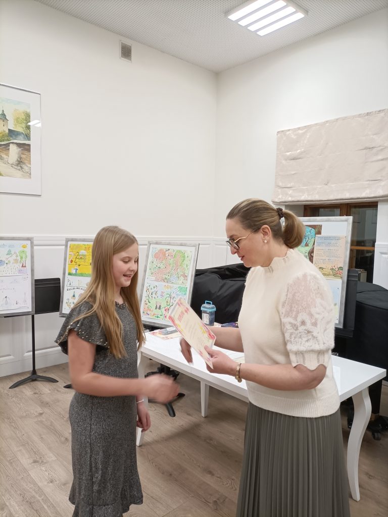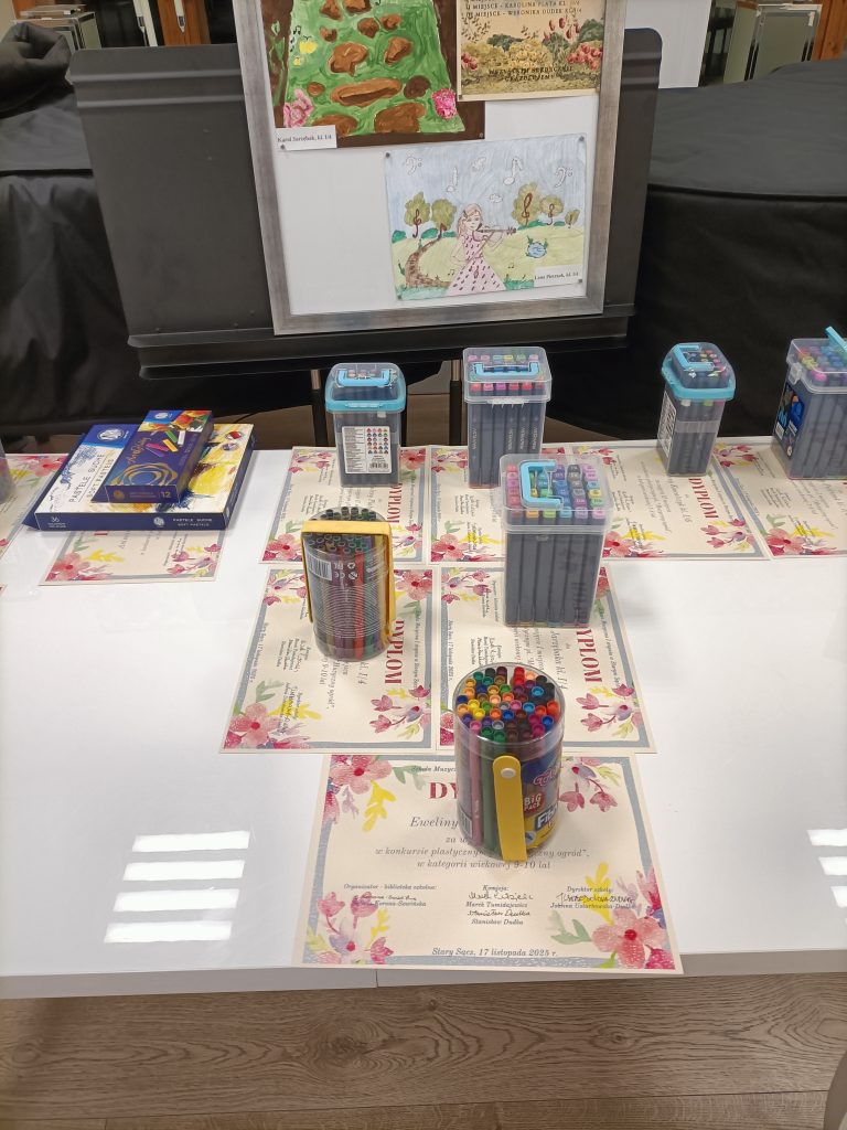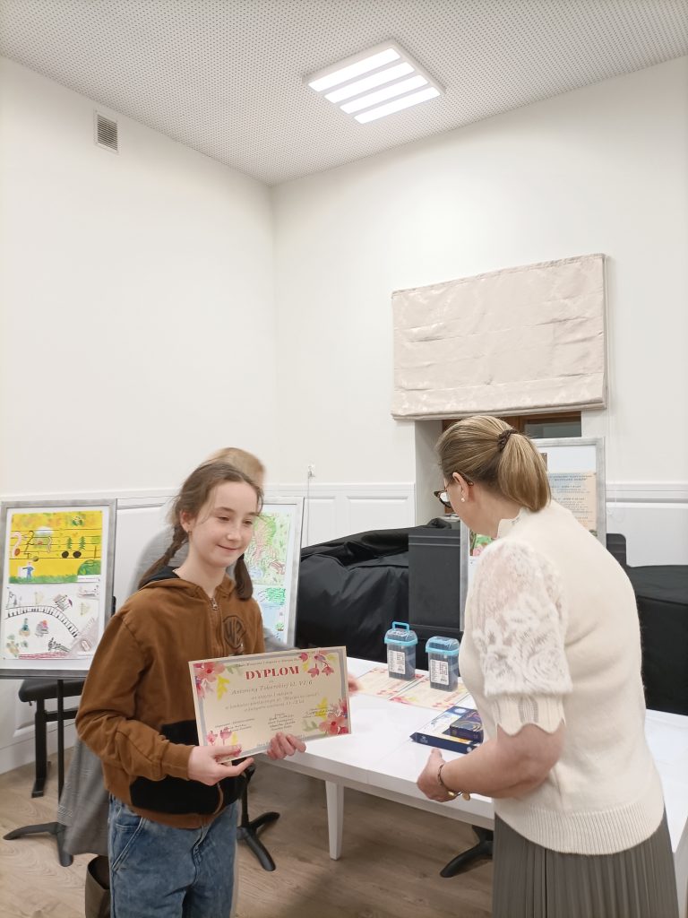 • W dniu 27.11.2025 r. w sali kameralnej naszej szkoły odbyło się wręczenie nagród laureatom konkursu plastycznego pt. „Muzyczny ogród – zabierz mnie tam wyobraźnią”. Organizatorem konkursu była pani Sylwia Korona-Sowińska z biblioteki szkolnej, która wraz z panią dyrektor Joanną Ustarbowską-Dudką wręczyła nagrody wyróżnionym uczniom. Laureatom konkursu serdecznie gratulujemy.