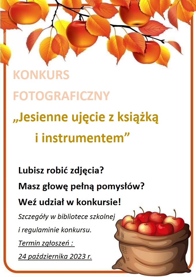 Biblioteka Szkoły Muzycznej I stopnia w Starym Sączu serdecznie zaprasza uczniów szkoły do wzięcia udziału w konkursie fotograficznym pt. „Jesienne ujęcie z książką i instrumentem”.