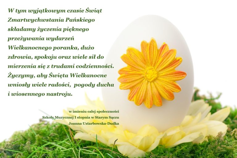 W tym wyjątkowym czasie Świąt Zmartwychwstania Pańskiego składamy życzenia pięknego przeżywania wydarzeń Wielkanocnego poranka, dużo zdrowia, spokoju oraz wiele sił do mierzenia się z trudami codzienności. Życzymy, aby Święta Wielkanocne wniosły wiele radości, pogody ducha i wiosennego nastroju. w imieniu całej społeczności Szkoły Muzycznej I stopnia w Starym…