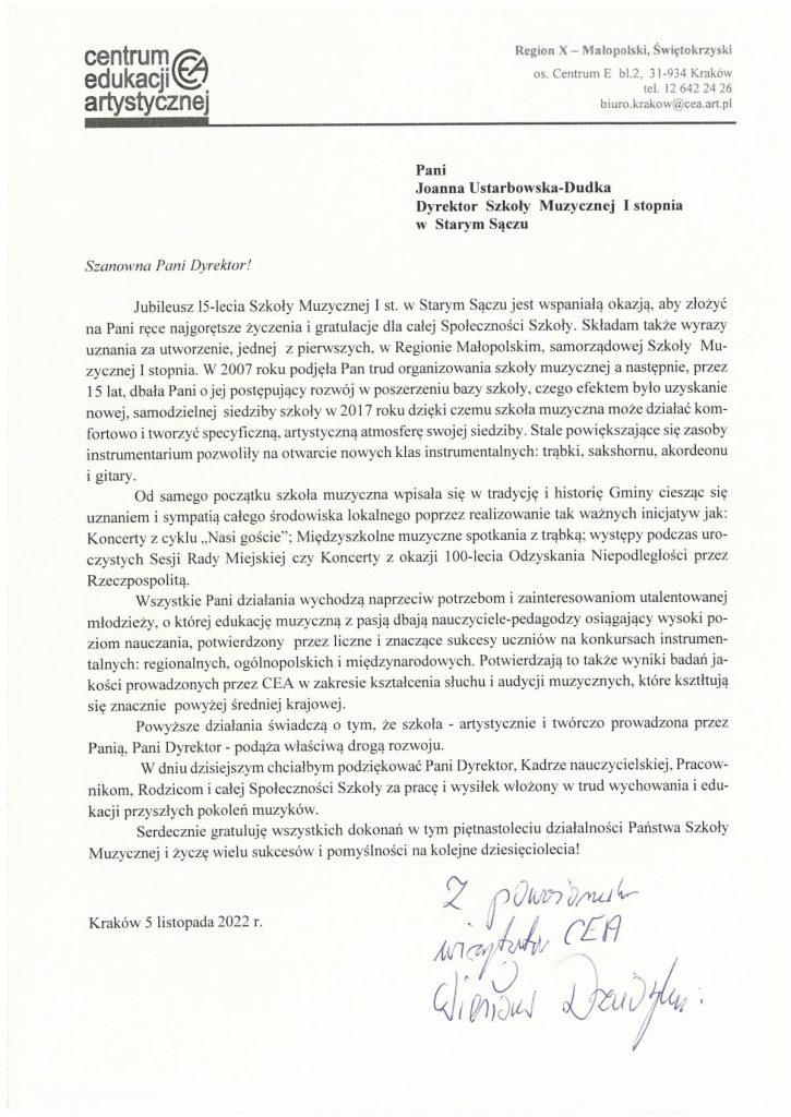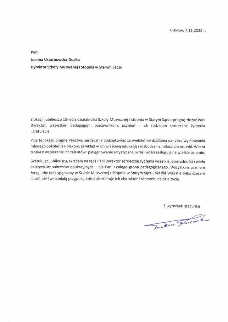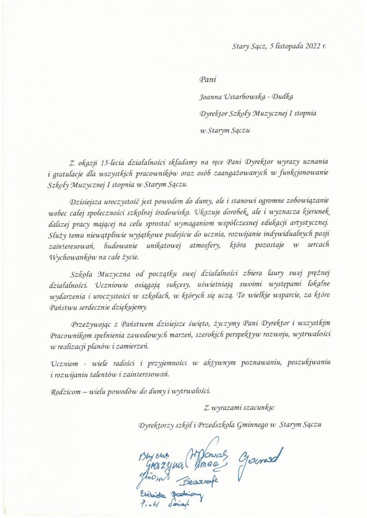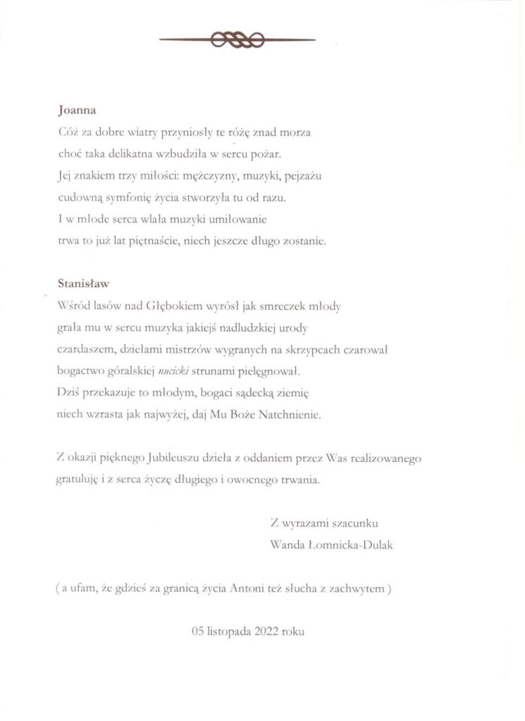Serdecznie zapraszamy Państwa do oglądania fragmentów Mszy Świętej ,,Missa Antiqua”, która w dniu 05 listopada 2022 r. o godz. 15.00 w kościele parafialnym p.w. Świętej Elżbiety Węgierskiej w Starym Sączu rozpoczęła program obchodów 15-lecia Szkoły Muzycznej I stopnia w Starym Sączu oraz Koncertu Jubileszowego, który odbył się o godz. 17.00 w starosądeckim Sokole.